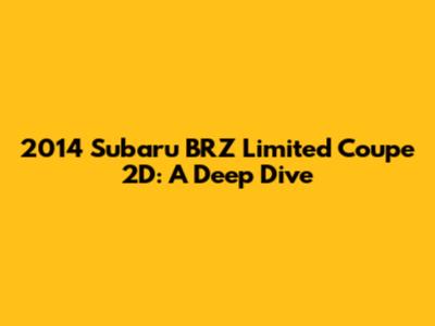 Hey guys! Let's talk about the 2014 Subaru BRZ Limited Coupe 2D. This car is a blast from the past that still holds up today. If you're looking for a fun, sporty, and affordable ride, the BRZ might just be the perfect fit. In this article, we're going to explore everything that makes this car special, from its performance and handling to its interior features and overall value. Buckle up, because we're about to take a ride down memory lane with the 2014 Subaru BRZ Limited Coupe 2D!