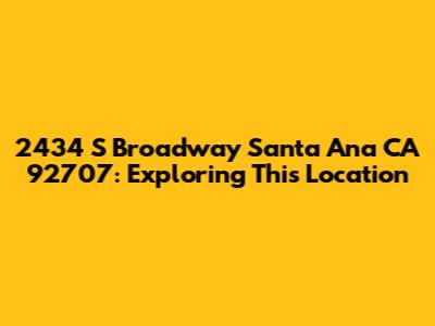 Hey guys! Let's dive into everything you need to know about 2434 S Broadway in sunny Santa Ana, California, specifically zip code 92707. This address might seem like just another set of numbers and a street name, but for many, it represents a home, a business, or a place filled with memories. In this article, we'll break down what makes this location significant, how to find it, and what you might expect to find there. Whether you're a prospective resident, a curious visitor, or just doing some research, stick around – we've got you covered!