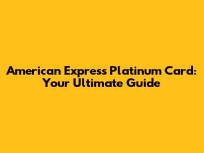 American Express Platinum Card: Your Ultimate Guide