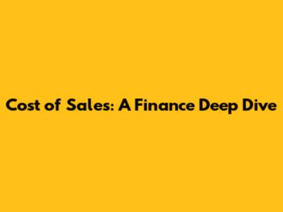 Cost Of Sales: A Finance Deep Dive