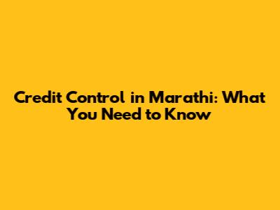 Credit Control In Marathi: What You Need To Know
