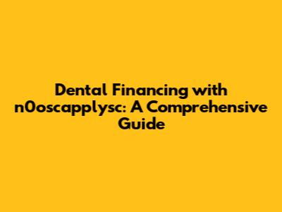 Dental Financing With N0oscapplysc: A Comprehensive Guide