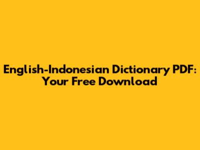 English-Indonesian Dictionary PDF: Your Free Download