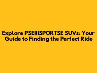 Explore PSEIIISPORTSE SUVs: Your Guide To Finding The Perfect Ride