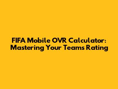 FIFA Mobile OVR Calculator: Mastering Your Team's Rating