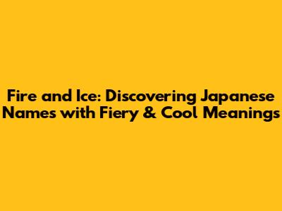 Fire And Ice: Discovering Japanese Names With Fiery & Cool Meanings