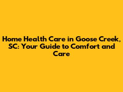 Home Health Care In Goose Creek, SC: A Comprehensive Guide