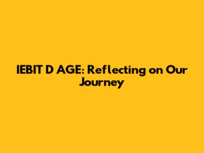 IEBIT D AGE: Reflecting On Our Journey