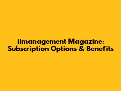 Iimanagement Magazine: Subscription Options & Benefits