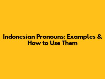 Indonesian Pronouns: Examples & How To Use Them