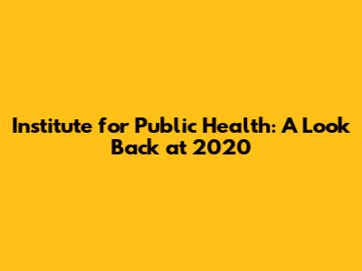 Institute For Public Health: A Look Back At 2020
