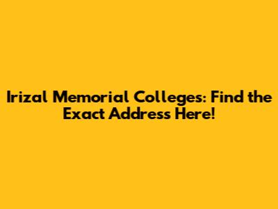 Irizal Memorial Colleges: Find The Exact Address Here!