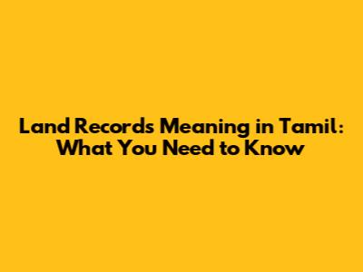 Land Records Meaning In Tamil: What You Need To Know