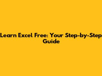 Learn Excel Free: Your Step-by-Step Guide