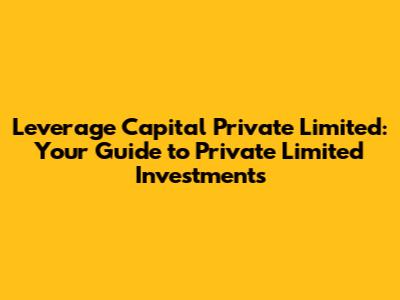 Hey guys! Ever heard of Leverage Capital Private Limited and wondered what it’s all about? Well, you're in the right place! This article dives deep into what Leverage Capital Private Limited is, what they do, and why they might be a significant player in the world of private limited investments. We'll break down the complexities and make it super easy to understand, even if you're not a finance whiz. So, buckle up and let's get started!