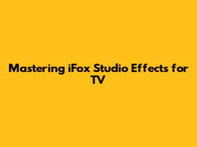 Mastering IFox Studio Effects For TV