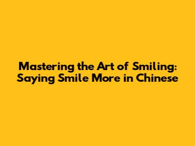 Mastering The Art Of Smiling: Saying 'Smile More' In Chinese