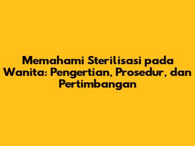 Hai, teman-teman! Pernahkah kalian mendengar tentang sterilisasi pada wanita? Mungkin istilah ini terdengar asing bagi sebagian orang, tapi sebenarnya ini adalah topik yang sangat penting, terutama bagi wanita yang sedang mempertimbangkan perencanaan keluarga. Dalam artikel ini, kita akan membahas secara mendalam tentang apa itu sterilisasi pada wanita, bagaimana prosedurnya dilakukan, dan apa saja yang perlu dipertimbangkan sebelum memutuskan untuk melakukan sterilisasi. Jadi, mari kita mulai!