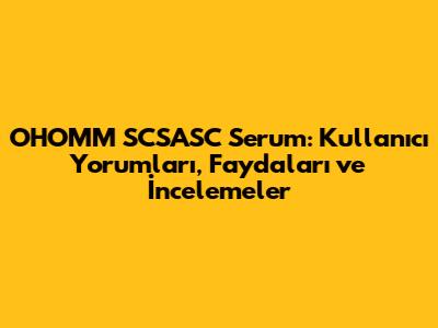 OHOMM SCSASC Serum: Kullanıcı Yorumları, Faydaları Ve İncelemeler