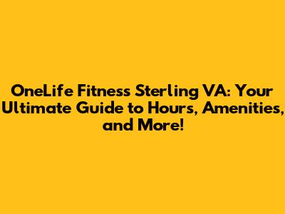 OneLife Fitness Sterling VA: Hours & More!