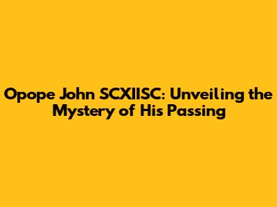 Our objective is to provide a factual and objective account of the circumstances surrounding the death of Opope John SCXIISC. We must uphold the highest ethical standards. It is our duty to handle the information with responsibility, respect, and a commitment to truth and accuracy.