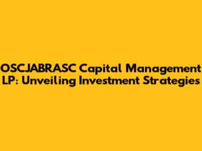 This article is designed to give you a comprehensive understanding of OSCJABRASC Capital Management LP. We'll break down its key strategies, analyze its investment philosophy, and give you a glimpse into its overall impact on the financial landscape. So, whether you're a seasoned investor, a budding finance professional, or just someone curious about the inner workings of investment firms, this is your go-to guide. Let’s get started and unravel the mysteries of OSCJABRASC!