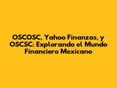 OSCOSC, Yahoo Finanzas, Y OSCSC: Explorando El Mundo Financiero Mexicano