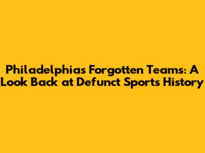 Philadelphia's Forgotten Teams: A Look Back At Defunct Sports History