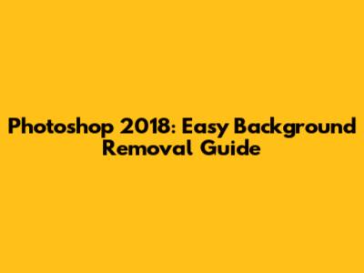 Photoshop 2018: Easy Background Removal Guide