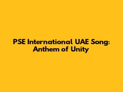 PSE International UAE Song: Anthem Of Unity