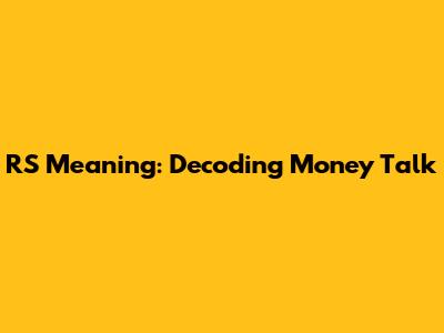 RS Meaning: Decoding Money Talk