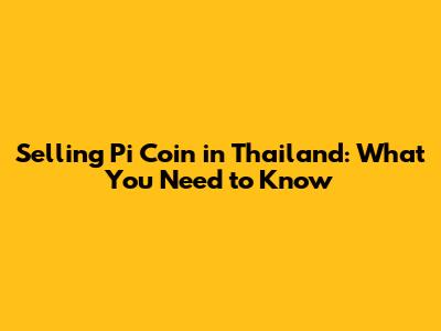 Selling Pi Coin In Thailand: What You Need To Know