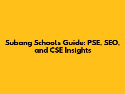 Subang Schools Guide: PSE, SEO, And CSE Insights