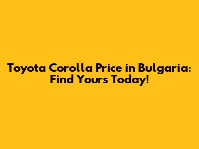 Toyota Corolla Price In Bulgaria: Find Yours Today!