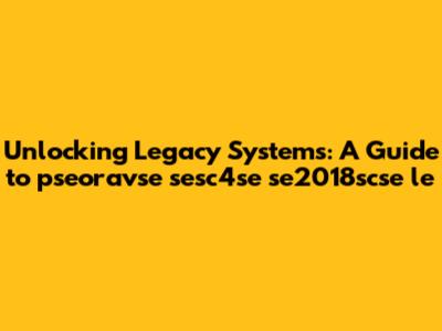 Unlocking Legacy Systems: A Guide To Pseoravse Sesc4se Se2018scse Le