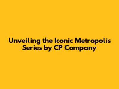 Unveiling The Iconic Metropolis Series By CP Company