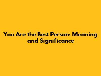 You Are The Best Person: Meaning And Significance